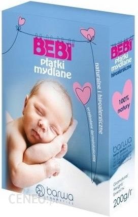 PŁATKI MYDLANE DO PRANIA BEBI 200 GPłatki mydlane Bebi to w 100% produkt naturalny i hipoalergiczny przeznaczony do prania pieluszek oraz ubranek niemowlęcych i dziecięcych. Polecany jest także do prania bielizny osobistej i ubrań z delikatnych tkanin jak: wełna, len, jedwab. Płatki mydlane są bardzo łagodne dla szczególnie wrażliwej skóry niemowląt, dzieci czy dorosłych.Nie zawierają: alergenów, detergentów, enzymów, barwników, kompozycji zapachowej i składników pochodzenia zwierzęcego.Sposób użycia:Pranie ręczne: stosować dwie łyżki płatków na 2l wody (płatki należy wcześniej rozpuścić w 0,6l gorącej wody).Pranie w pralce: płatki mydlane w zalecanej ilości (patrz tabelka) rozpuścić w 1 l gorącej wody i wlać bezpośrednio do bębna pralki.Dozowanie na wsad do pralki:WODAILOŚĆ PŁATKÓWMiękka37g (około 6 łyżek)Średnio twarda50g (około 8 łyżek)Twarda63g (około 10 łyżek)UWAGA: należy przestrzegać zaleceń producentów odzieży; pranie dokładnie wypłukać; zawartość opakowania wystarcza na około 4 cykle prania w pralce.Ingredients: powyżej 30% mydła.
