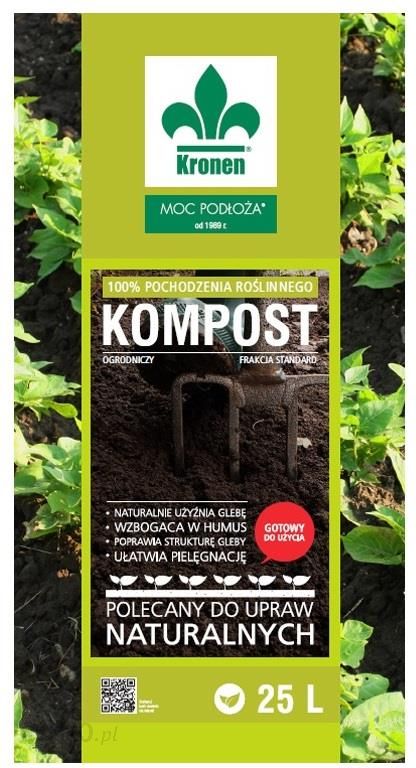 SkładnikiemKronen® KOMPOST są wyłącznie rośliny i ich części pozostałe po pielęgnacji ogrodów, parków itp. Nie zawiera organicznych odpadów gospodarczych. Powstaje w przemysłowym procesie technologicznym, którego etapy są kontrolowane. Końcowy produkt jest certyfikowany.Gleba jest niewyczerpalnym, ale coraz częściej zanieczyszczonym elementem środowiska naturalnego. Często jest wyjałowiona, o zniszczonej strukturze. Nie ma zdrowej żywności bez zdrowego podłoża. Stosowanie kompostu jest formą naturalnego nawożenia organicznego i rekultywacji gleb.W uprawach zmniejsza konieczność do nawożenia.Kronen® KOMPOST ma zastosowanie:- w uprawie warzyw,- w pielęgnacji rabatowych roślin ozdobnych,- jako komponent podłoży,- do nasadzeń drzew i krzewów ozdobnych,- do zakładania trawników,- do poprawy struktury gleby.Jakość kompostu nie jest bez znaczenia – kompost kompostowi nie jest równy.Jego jakość zależy od materiału wyjściowego użytego do kompostowania, czasu trwania procesu dojrzewania i jego kontroli. Czas dojrzewania to 6-12 miesięcy. Niezmiernie ważne jest, żeby proces przebiegał w temperaturze 55-60°C i przy odpowiedniej ilości tlenu niezbędnego w procesie rozkładu (tzw.przewietrzanie).