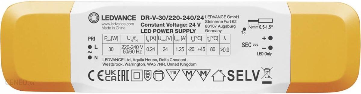 Zasilacz Stałonapięciowy do Taśm LED 30W 24V DC IP20 Value LEDVANCEStałonapięciowy zasilacz modułowy serii VALUE renomowanej i cenionej w branży oświetleniowej firmy LEDVANCE. Zasilacz o napięciu wyjściowym 24V i mocy 30W przeznaczony do zasilania Taśm LED. Niezwykle wąski zasilacz o szerokości42mm, dzięki czemu zasilacz możemy umieścić nawet w najbardziej trudnodostępnych i ciasnych miejscach. Zasilacz o stopniu ochrony IP20 i wysokiej trwałość do 35 000 godzin. Dodatkowo zasilacz posiada ochronę przed przegrzaniem, przeciążeniem, zwarciem i rozwarciem. Niskie napięcie wyjściowe zapewnia bezpieczeństwo użytkowników. Korzyści ze stosowania produktuDoskonałe dopasowanie do uniwersalnych pasków LED 24 VDoskonała proporcja ceny do wydajności3-letnia gwarancjaSzybka i łatwa instalacjaDobra wydajność i niezawodnośćObszar zastosowańOświetlenie wnęk, nawet w miejscach o ograniczonej przestrzeniNaświetlacz do oświetlenia efektowego w pokojach dziennych, jadalniach, sypialniach i wejściachOdpowiednie do instalacji oświetlenia wewnętrznego typu SELVBiura, centra handlowe, szpitale, restauracje i hoteleCechy produktuZintegrowany zacisk przewodu umożliwia niezależną instalacjęTrwałość: do 35 tys. godzin (przy maks. temperaturze tc)Stopień ochrony: IP20Niskie tętnienie prądu < 5%Napięcie zasilania: 220…240 VCzęstotliwość pracy: 50/60 HzPraca z napięciem poniżej 60 V: bezpieczne, niskie napięcie (SELV)Odwracalna ochrona przed przegrzaniem, przeciążeniem, zwarciem i rozwarciemZapraszamy do sprawdzenia naszych pozostałych ofert dotyczących Zasilaczów do LED.Zasilacz wykonany został z wysokiej jakości materiałów, zapewniających jego długotrwałą żywotność i satysfakcję z zakupu. Tylko zakup markowych produktów gwarantuje wysoką jakość, energooszczędność, bezpieczeństwo użytkowania oraz pewność, że informacje umieszczone na opakowaniach będą zgodne z prawdą.