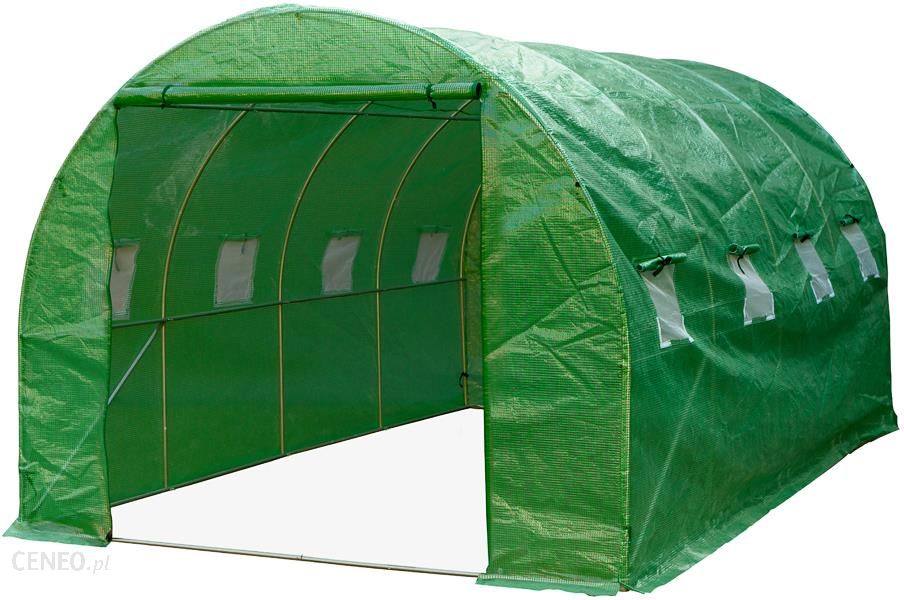 Tunel ogrodowy Promis TF420 Green HouseTania i łatwa w montażu alternatywa dla tradycyjnych szklarni. Tunel foliowy Promis TF420 pozwoli Ci maksymalnie wykorzystać możliwości twojej działki zapewniając doskonałe warunki do uprawy owoców i warzyw stymulując ich wzrost i poprawiając wydajność plonów, chroniąc przed szkodliwym i zbyt intensywnym promieniowaniem słonecznym, porywistym wiatrem, nagłym oberwaniem chmury czy niewielkim gradobiciem.WymiaryDługość – 4 mWysokość – 2 mSzerokość – 2 mSzerokość wejścia – 1 mPowierzchnia – 8 m²Cechy produktu-łatwy montaż za pomocą śrub zapewnia sztywność konstrukcji-obustronnie ocynkowane, stalowe profile odporne na korozję zapewniają wysoką wytrzymałość konstrukcji tunelu-fartuch ziemny o długości do 35 cm do obsypania ziemią zabezpiecza tunel przed podwianiem i usztywnia jego konstrukcję-folia PE o gramaturze 140g/m² wzbogacona filtrem UV4 zapewnia optymalne właściwości termoregulacyjne i odpowiednią przepustowość światła słonecznego stymulującą wzrost roślin-folia wzmocniona wtopioną siatką PP chroniącą pokrycie tunelu przed rozerwaniem-8 zamykanych na rzepy okien z moskitierami pozwala odpowiednio regulować temperaturę i wilgotność powietrza wewnątrz tunelu-szerokie, zamykane na zamki błyskawiczne drzwi zapewniają swobodne wejście do tunelu a 2 metry wysokości ułatwią wykonywanie prac i pozwalają na uprawę roślin pnącychPodwójna folia PE 140g/m² UV4Przeźroczysta folia PE 140g/m² UV4 z zieloną, wzmocnioną siatką PP wtopioną w strukturę foli jest bardzo odporna na uszkodzenia i stwarza najlepsze warunki dla prawidłowego wzrostu roślin izolując je od niekorzystnych czynników zewnętrznychProfile odporne na rdzęStalowe, obustronnie ocynkowane profile o średnicy 19mm zapewniają stabilność i wysoką odporność konstrukcji tunelu.Fartuch ziemnyFartuch ziemny o długości do 35 cm zapobiega przed podwiewaniem tunelu i usztywnia jego konstrukcję8 okien zamykanych na rzepy8 zamykanych na rzepy okien z moskitierami pozwala odpowiednio regulować temperaturę i wilgotność powietrza wewnątrz tunelu tworząc pożądane warunki dla wzrostu uprawianych roślin