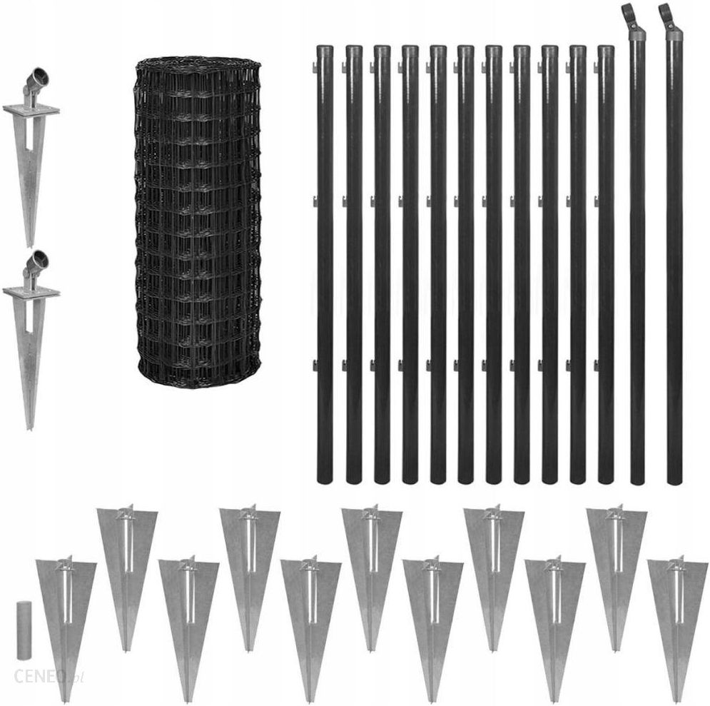 Euro ogrodzenie, stalowe, 25 x 1 m, szareZestaw ogrodzeniowy euro wraz z kotwami do ziemi zawiera wszystko, czego potrzebujesz do zbudowania solidnego i łatwego w montażu ogrodzenia. Może być stosowany jako zwykłe ogrodzenie, zagroda dla zwierząt lub zabezpieczenie innych obiektów.Zestaw dostarczany jest wraz ze słupkami oraz akcesoriami montażowymi, w tym zaślepkami, uchwytami do drutu i śrubami. Załączone kotwy umożliwiają łatwe osadzenie słupków, bez potrzeby kopania wgłębień w ziemi. Ogrodzenie ma mocną konstrukcję. Siatka pokryta PVC jest odporna na warunki atmosferyczne, korozję i promieniowanie UV.Ogrodzenie można szybko i łatwo postawić.Kolor: szaryMateriał: drut stalowy z pokryciem PVCDługość: 25 mWysokość: 1 mWymiary oczek siatki: 100 x 100 mm (dł. x szer.)Średnica drutu: 1,8 / 2,2 mm (1,8 mm – stalowy drut; 2,2 mm – drut z pokryciem PVC)Średnica słupka: 34 mmZawartość przesyłki:1 x euro ogrodzenie powlekane PVC (siatka)11 x słupek prosty (wysokość: 1,2 m )11 x kotwa do ziemi dla słupka prostego2 x słupek podporowy (wysokość: 1,5 m)2 x kotwa z uchwytem na słupek podporowy1 x rurka młotkowana