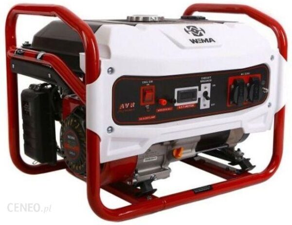 Agregat prądotwórczy firmy WEIMA, model WM2500 charakteryzują użyte wysokiej klasy materiały, długa żywotność, oraz mocny silnik tego samego producenta, dzięki czemu jest równie wysokiej jakości co innych znanych producentów. Dzięki mocnemu silnikowi benzynowemu WM168FB o mocy 6,5 km nasz agregat bez problemu może posłużyć jako główne, lub zapasowe źródło zasilania dla urządzeń o małej mocy. Urządzenie nada się doskonale do pracy na świeżym powietrzu jak i do korzystania w garażu, lub warsztacie.Dodatkowym atutem jest lekka konstrukcja, lecz trwała konstrukcja, dzięki czemu z łatwością możemy przetransportować nasz agregat prądotwórczy. Główne cechy i zalety naszego agregatu prądotwórczego:solidna i ergonomiczna konstrukcja zapewnia wytrzymałość, oraz łatwość w transporcie agregatudokładnie wykonane elementy w celu zmniejszenia wibracji i hałasuaby zapewnić komfort wprowadzonych zostało kilka wskaźników: woltomierz, wskaźnik poziomu oleju, oraz paliwadzięki wysokiej jakości silnikowi benzynowemu WEIMA WM168FB otrzymamy wystarczającą ilość mocy potrzebną do zasilania potrzebnego nam urządzeniaposiada certyfikat CE świadczący o dokładnym wykonaniu przez producenta, oraz dbałości o bezpieczeństwo użytkownika agregatu prądotwórczegoniska emisja spalin silnika w trosce o nasze środowiskosilnik umieszczony w agregacie został wyposażony w czujnik oleju, dzięki czemu w razie braku oleju zablokuje silnik i zapobiegnie on zniszczeniu silnika wyjście DC 12 V 8,3 Auziemienie1 jednofazowe gniazdo 16AŁatwość w obsłudze i konserwacji:duży zbiornik paliwa przy niskim spalaniu (0,55 litra na godzinę) zapewni dłuższy czas pracy po jednym zalaniu dzięki czemu zaoszczędzimy cenny czasduży otwór szyjki wlewu, aby usprawnić i ułatwić nam zalewanie baku paliwemdwa spusty do wlewania oleju w celu zapewnienia łatwiejszej konserwacji silnika motopompywytrzymały i dobrze wyprofilowany rozrusznik silnika sprawi, że uruchamianie będzie dużo prostsze i przyjemniejsze